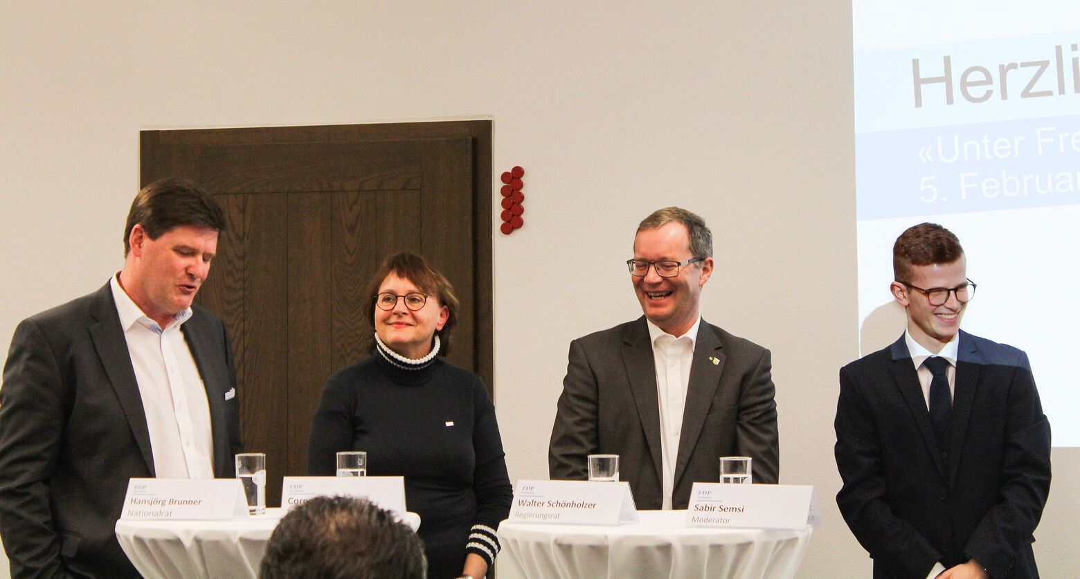 «Die Politik ist auf Unternehmer angewiesen.» Das Milizsystem sei deshalb sehr wichtig, gaben Nationalrat Hansjörg Brunner und der Schlatter Kantonsrat Max Möckli zu verstehen. Beide kämpfen gegen unsinnige Regulierungen und bringen die freiheitlichen Werte auf Bundes- und Kantonsebene ein. «Die Arbeit in einer Behörde ist faszinierend und im Nachhinein frage ich mich, weshalb ich nicht schon lange in die Politik eingestiegen bin», gab die Kreuzlinger Kantonsrätin Cornelia Zecchinel zu verstehen. Für das gemeinsame Weiterkommen brauche es Diskussionen wie auch Kompromisse und vor allem Mehrheiten, betonte Regierungsrat Walter Schönholzer. Angetan von ihrer Arbeit ist auch Marianna Frei. «Für mich steht das Wohl der Bevölkerung an erster Stelle», liess die Schlatter Gemeindepräsidentin und Bezirksrichterin verlauten.